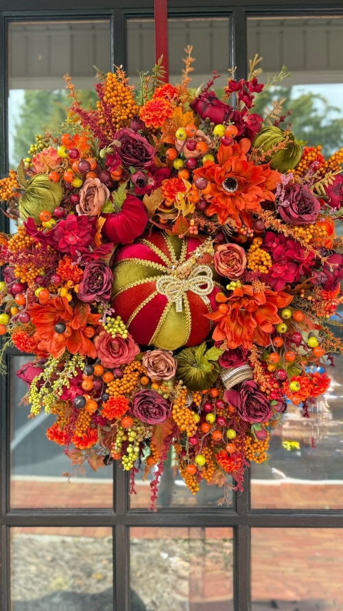 $135.00Out of stockLuxe Harvest Bloom Velvet Pumpkin Wreath Autumn Floral Wreath