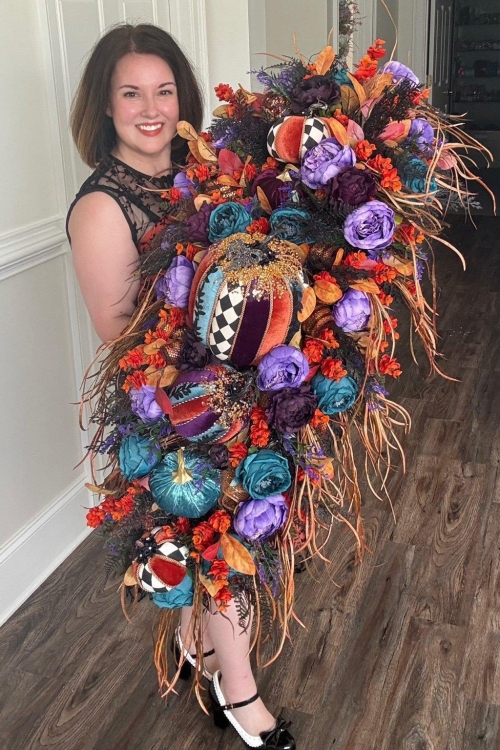 $325.00Moody Bohemian Harlequin Pumpkin Wreath